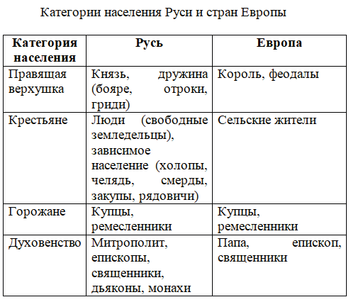 1. Какая система управления государством существовала на Руси в XI в.? Чем она отличалась от системы управления западноевропейских стран? 2. Используя материал учебника и дополнительные источники информации, составьте и прокомментируйте таблицу "Категории населения Руси и в странах Европы и их характеристика". 3. Как на Руси сформировалась княжеская и боярская собственность на землю? При ответе используйте термины "переход земли в частные руки", "княжеские владения", "вотчина". 4. Нарисуйте в тетради схему "Церковная организация на Руси и в Западной Европе". 5. Какую роль в жизни людей играла Церковь? Почему? 6. Какое влияние на развитие Руси оказали монастыри? 7. Назовите категории собственников личных земельных владений на Руси. В чём вы видите черты сходства и различия между ними?