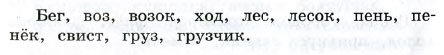 - слова из корня и нулевого окончания (бег , воз , ход , лес , пень , свист , груз )