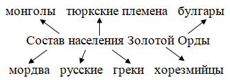 3. Выделите главные особенности хозяйства и состава населения Золотой Орды. Отразите их в схеме.