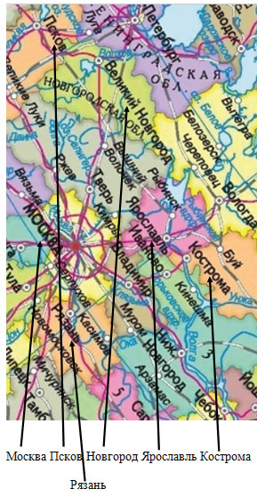 Покажите перечисленные в тексте города и территории на карте.