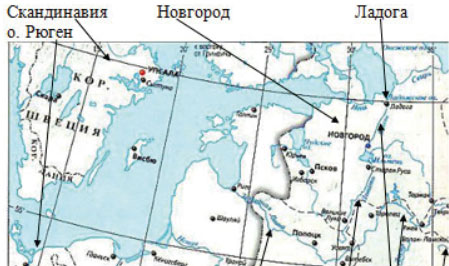 1. Покажите на карте Скандинавию, остров Рюген, Ладогу, Новгород. 2. Найдите на карте реки, по которым шла торговля из древнейших русских центров.