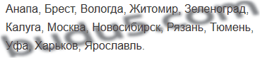 Спиши названия городов в алфавитном порядке.