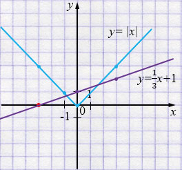 \(\begin{cases}y - |x|=0,\\ y=\frac13x+1\end{cases}\)