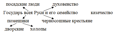1. С помощью компьютера создайте схему, показывающую состав общества Русского государства в начале XVI в.