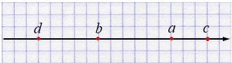 Известно, что \(a, b, c\) и \( d\) — положительные числа, причём \(a > b\), \(d < b\), \(c > a\). Расположите в порядке возрастания числа:
