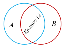 Проиллюстрируйте с помощью кругов Эйлера соотношение между множеством чисел, кратных 4, и множеством чисел, кратных 3. Какое множество изображает общая часть этих кругов?