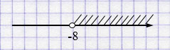 Если знак неравенства строгий (\(>\) или \(<\)), то точку на координатной прямой делаем "выколотой" (незакрашенной), при записи промежутка используем круглую скобку.