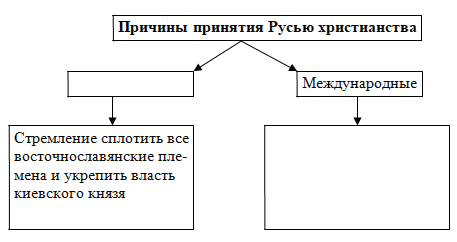 Задание 3. Заполните пропуски в схеме "Причины принятия Русью христианства".