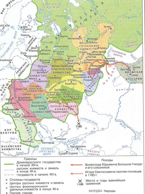 Задание 5. На контурной карте обозначьте общую границу Руси и границы отдельных земель и княжеств. Напишите названия самых крупных из них и названия их центров.