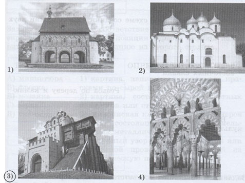 На каких двух изображениях представлены памятники культуры государства Русь, а на каких - памятники культуры зарубежных стран? Запишите в таблицу порядковые номера соответствующих изображений.