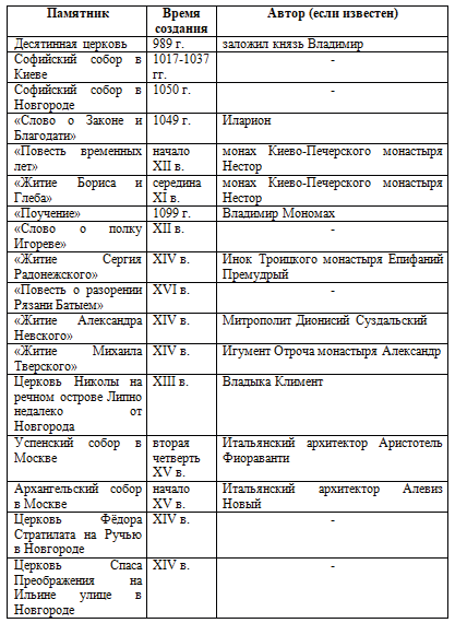 Задание 5. Найдите в библиотеке или в Интернете изображения объектов культуры XIII - XIV вв. Продолжите заполнение в тетради таблицы "Важнейшие памятники русской культуры X - начала XVI в." (с. 46 - 47).
