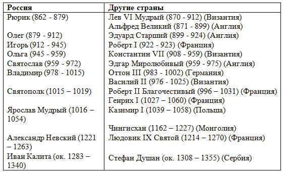 Задание 8. С помощью Интернета и учебников по истории России и истории Средних веков продолжите составлять в тетради (или в электронной форме) список известных исторических деятелей, живших в одно время.