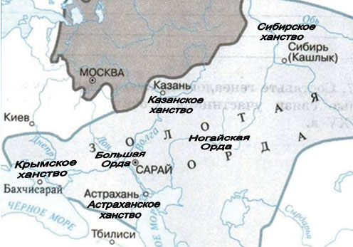 Задание 1. На контурной карте подпишите названия государств, на которые распалась Золотая Орда.