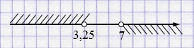 \( \begin{cases} y \le 3,25, \\[2pt] y \ge 7 \end{cases} \)