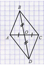 2) На луче \(BO\) отложите отрезок \(OD = BO\) и соедините точку \(D\) с точками \(A\) и \(C\). Какой вид имеет четырёхугольник \(ABCD\)?