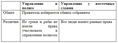Задание 7. Сравните систему управления у восточных славян и в древнегреческом полисе. Результаты представьте в виде таблицы.
