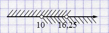 \(\begin{cases} x > 10, \\ x < 16,25 \end{cases} \)