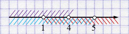 \( \begin{cases} x < 4,\\ x > 1, \\ x < 5 \end{cases} \)