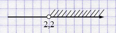 Если знак неравенства строгий (\(>\) или \(<\)), то точку на координатной прямой делаем "выколотой" (незакрашенной), при записи промежутка используем круглую скобку.