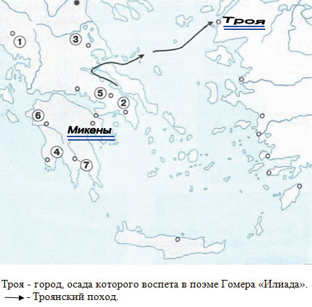 3) Подчеркните двумя линиями названия греческих городов, где вёл раскопки археолог Г. Шлиман.