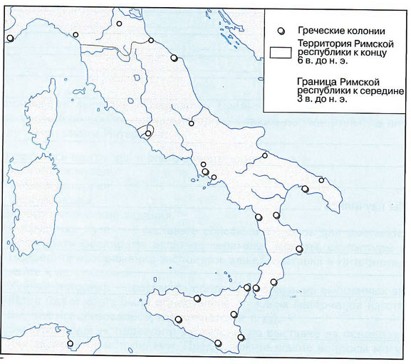 5) Обведите красным цветом границы Римской республики к середине III (3) в. до н. э.