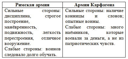 5. Заполните сравнительную таблицу "Сравнение армий Рима и Карфагена". Отметьте сильные и слабые стороны каждой из них.