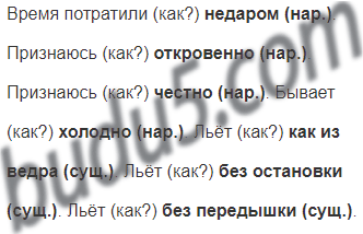 Время потратили (как?) ... . Признаюсь (как?) ... . Бывает (как?) ... . Льёт (как? каким образом?) ... .