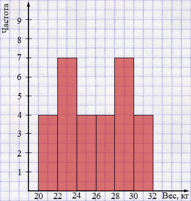 В оздоровительном лагере были получены следующие данные (с точностью до 0,1 кг) о весе 30 мальчиков: