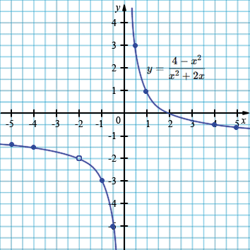 б) \(y=\dfrac{4-x^{2}}{x^{2}+2x}\).