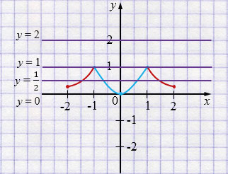 \[ y = \begin{cases} x^{-2}, \;если\; -2 \le x < -1,\\[3mm] x^{2}, \;если\; -1 \le x \le 1,\\[3mm] x^{-2}, \;если\; 1 < x \le 2. \end{cases} \]