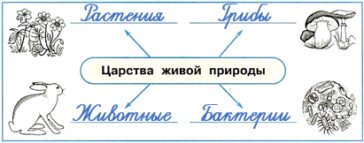 2. По символическим рисункам определяем названия царств и вписываем их в схему.