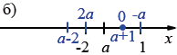 б) \(a<0; 2a < a \Rightarrow\) точка \(2a\) находится левее точки \(a\) и совпадает с точкой \(-2\).