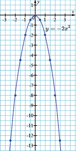 Это квадратичная функция вида \(y=ax^{2}\) с \(a<0\), значит график — парабола, направленная ветвями вниз. Строим график и по нему определяем значение функции при данном значении аргумента и наоборот, какому значению аргумента соответствует данное значение функции.