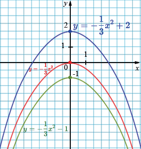 \( y=-\tfrac13 x^2+2 \): вершина: \((0; 2)\), ветви вниз.