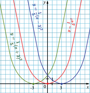 \( y=\tfrac15 (x+3)^2 \): вершина: \((-3; 0)\), ветви вверх.