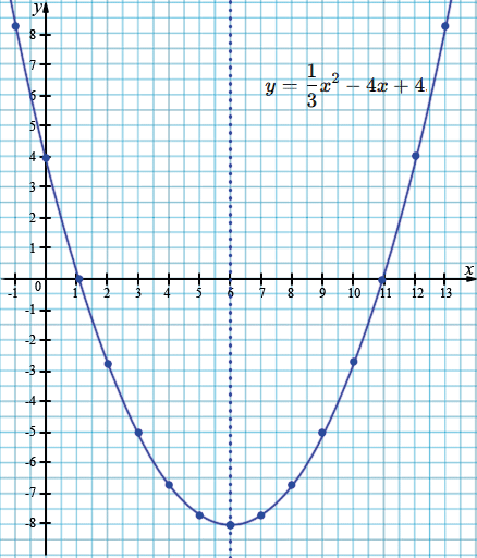 \(x=0\): \( y=\frac13\cdot 0^2 - 4\cdot0 + 4=4. \)
