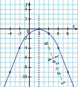 \(x=0\): \( y=-\frac14\cdot0^2 + 0 - 1=-1.\)