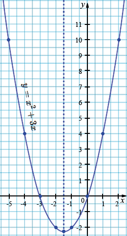 | \(y\) | 10 | 4 | 0 | -2 | -2,25 | -2 | 0 | 4 | 10 |
