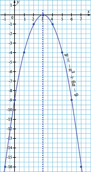\(x=0\): \( y = -0^2 + 6\cdot0 - 9=-9 \)