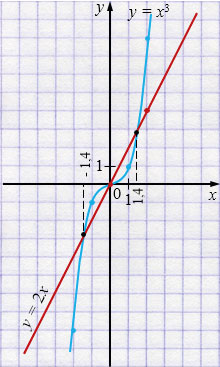 Ответ: \(x \approx -1,4\), \(x = 0\), \(x \approx 1,4\).