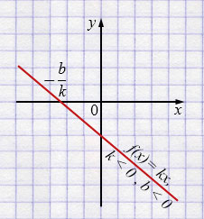 \(f(x) < 0\) при \(x < -\frac{b}{k}\).