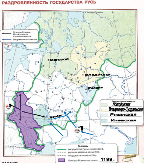 Рассмотрите контурную карту "Русь в IX - первой половине XII в. Раздробленность государства Русь" и выполните задания.