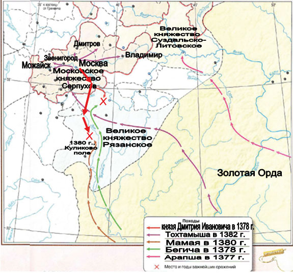 Рассмотрите контурную карту "Русские земли в середине в середине XIII - XIV в. Московское княжество и его соседи во второй половине XIV в. Куликовская битва" и выполните задания.