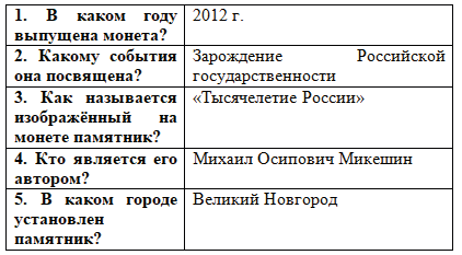 1. Рассмотрите монету, выпущенную Банком России, и ответьте на вопросы.
