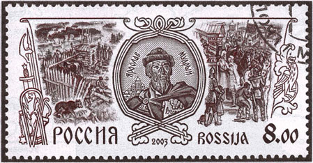 3. Рассмотрите почтовую марку, посвящённую Ярославу Мудрому, ответьте на вопросы и выполните задание.