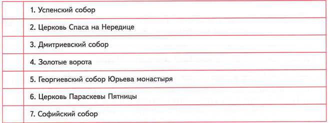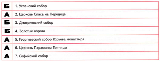 7. Отметьте буквами памятники архитектуры, построенные: А - в Новгороде, Б - во Владимире.