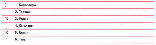 1. Отметьте названия городов, присоединённых к Москве в период правления Ивана Калиты.