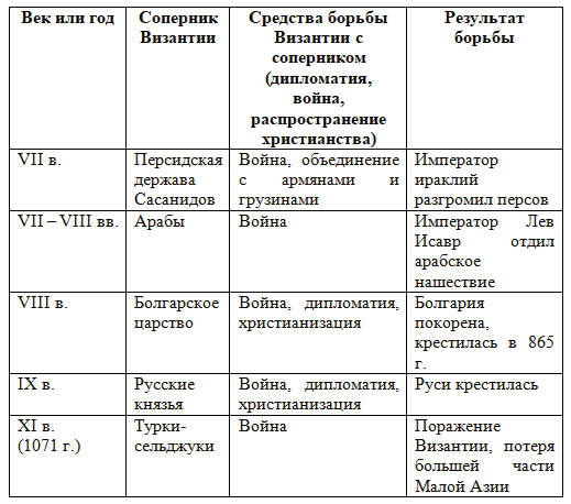 4. Прочитайте п. 3 параграфа и заполните таблицу "Византия и её соседи".