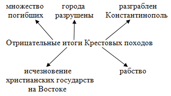Перечислите положительные и отрицательные итоги Крестовых походов. Ответ оформите в виде схемы.