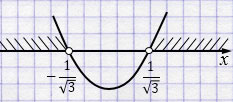 Ответ: \(x \in \left(-\infty; -\dfrac{1}{\sqrt{3}}\right) \cup \left(\dfrac{1}{\sqrt{3}}; +\infty\right)\).